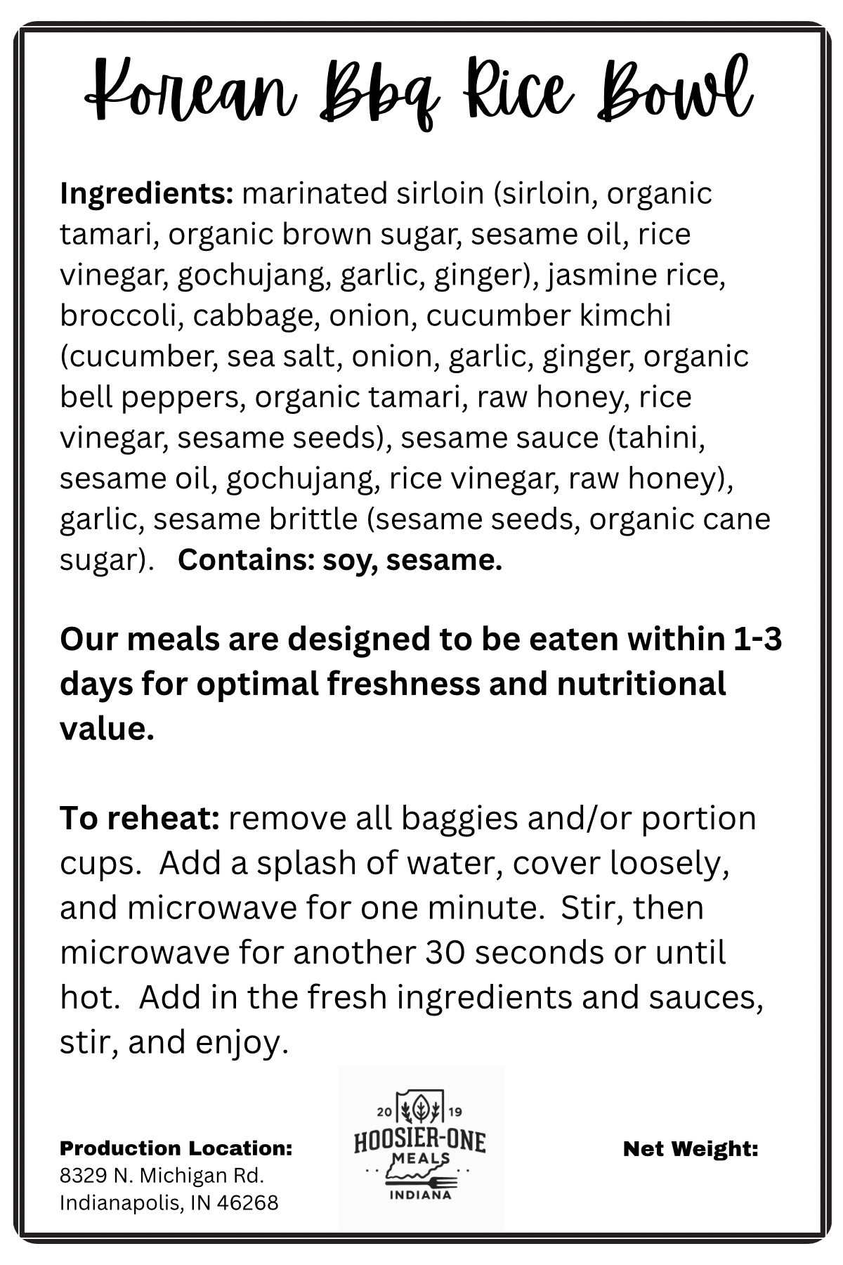 Fragrant jasmine rice topped with charred broccoli, cabbage slaw, scallions, and cucumber kimchi. Served with Korean BBQ beef, finished with spicy sesame sauce, crispy garlic, and sesame brittle.